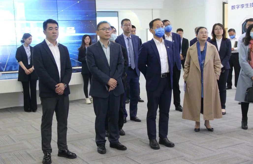 到访领导一行先后参观了今年会jinnianhui物联展厅及调控中心,今年会jinnianhui物联董事长刘柏呈详细讲解了由今年会jinnianhui物联自主研发的能源路由器、碳管理平台、coral物联网系统及数字孪生等技术。