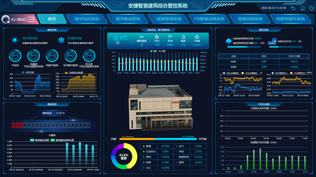 系统采用预集成产品及标准化的通讯接口,结合人工智能策略,使建筑成为自感知、自适应、自学习能力的生命体,实现建筑的智能、高效、节能、低碳、省人、节费的运行效果。